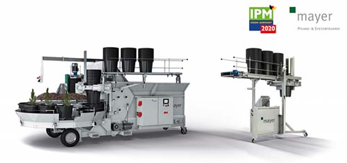 生產(chǎn)線(xiàn)于 2018 年投入使用,其核心是 Mayer 上盆機(jī) TM 2700XL。全自動(dòng)生產(chǎn)小效率可達(dá)10,000 盆/小時(shí),僅需 1 人操作即可。配套的基質(zhì)解壓機(jī) BZ 6160 和基質(zhì)攪拌機(jī) EM 6012 用 于基質(zhì)處理。