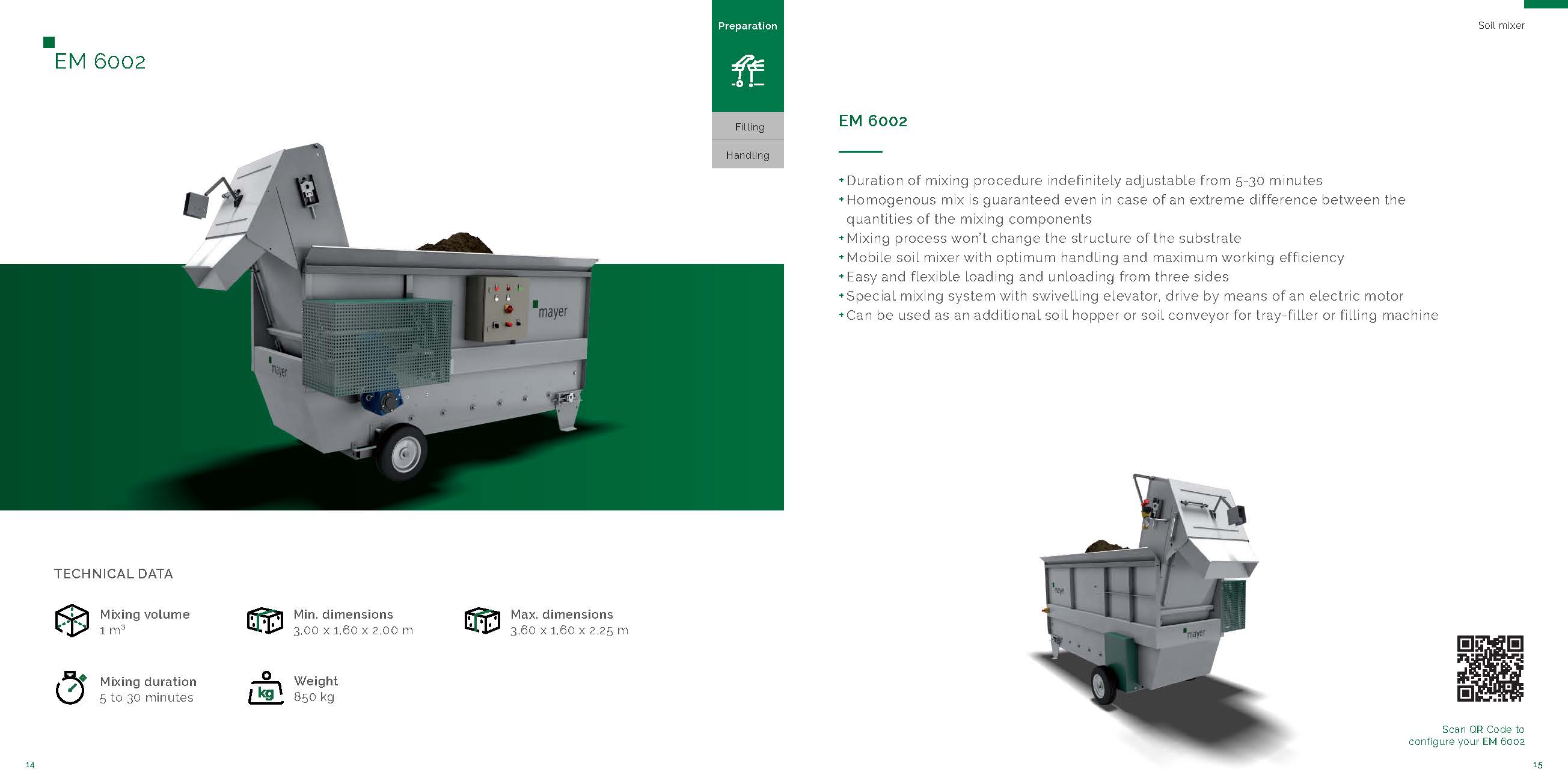 基質(zhì)攪拌機EM 6002適用于所有基質(zhì)的精確混合。在混合攪拌過程中,基質(zhì)可以被潤濕并添加肥料。 Mayer 基質(zhì)攪拌器機EM 6002的基質(zhì)料倉可以從三面裝載,無論是手動或鏟式機械手,推斗車或基質(zhì)解壓機。