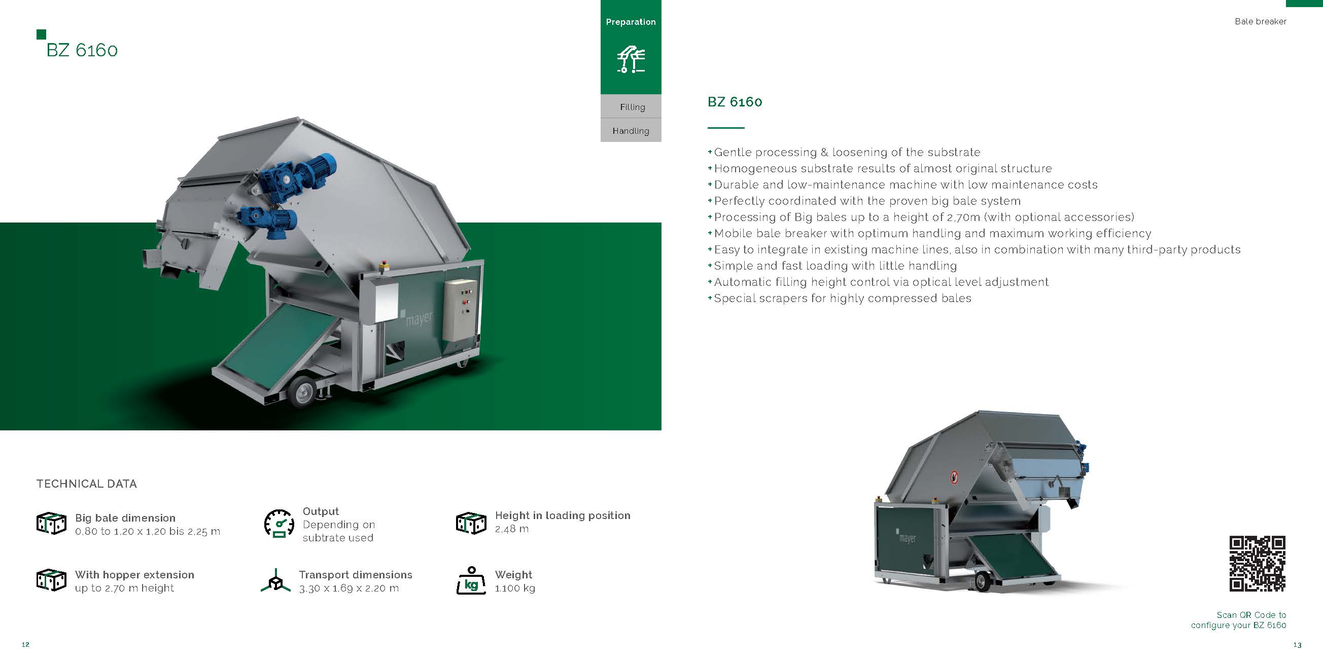 Mayer基質(zhì)攪拌機不需額外的附件即可靈活地適應(yīng)各種大包尺寸基質(zhì)。在生產(chǎn)中,它可以處理高達2.25米高的大包裝基質(zhì)。憑借可選的頂部擋板,它甚至可以處理高達2.70米的大包裝基質(zhì)。