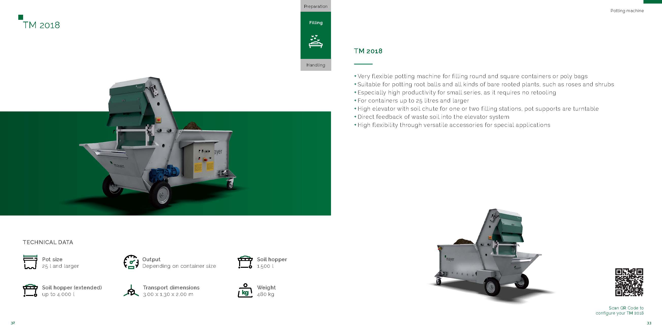 TM 2018是一款多功能產(chǎn)品,可用于填充圓形或方形盆以及不帶鉆孔的美植袋。TM 2018上盆快速,可靠且經(jīng)濟(jì)性高,可用于盆栽和各種裸露植物的上盆工作,例如玫瑰,灌木,攀援植物和果樹。填裝機(jī)也特別適合于高大的木本植物。