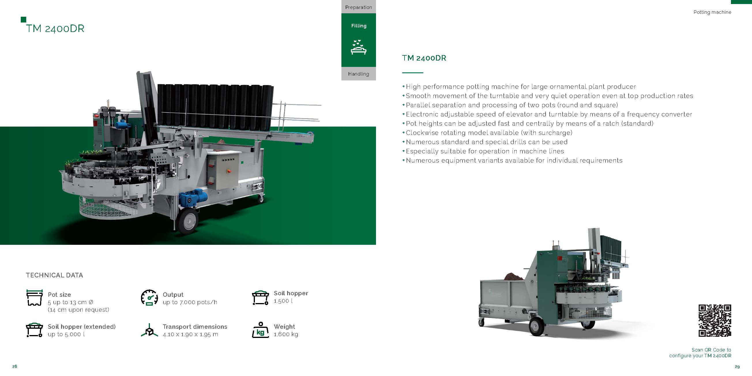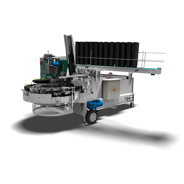 新型上盆機TM 2400DR再次將創(chuàng)新技術(shù)與人體工程學(xué)相結(jié)合。變頻控制的旋轉(zhuǎn)臺和升降機,通過工作區(qū)域的面板控制,操作簡單,產(chǎn)量輸出精確。新型的基質(zhì)倉結(jié)構(gòu)確保了更高的效率。這種結(jié)構(gòu)可防止在輸送基質(zhì)時形成通道阻塞,并且無需人工干預(yù)。